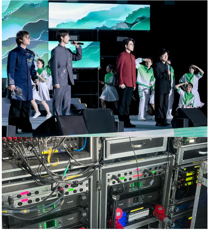 8只VERA S33心形指向超低扬声器与BSX双21寸超大型低音低频重放,为晚会注入了澎湃的力量,让音乐在快猫APP短视频下载上肆意流淌,为师生们带来了震撼的视听体验。TWAUDiO音响系统在演出市场中的优势不仅仅体现在音质上。其强大的功率输出和稳定的性能,使得音响系统在面对大型演出时依然能够游刃有余。